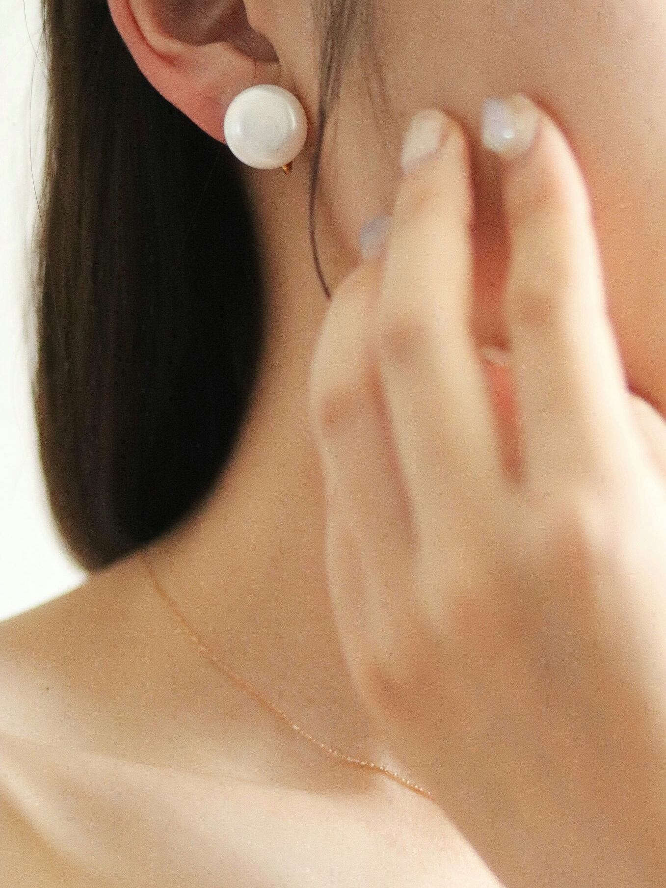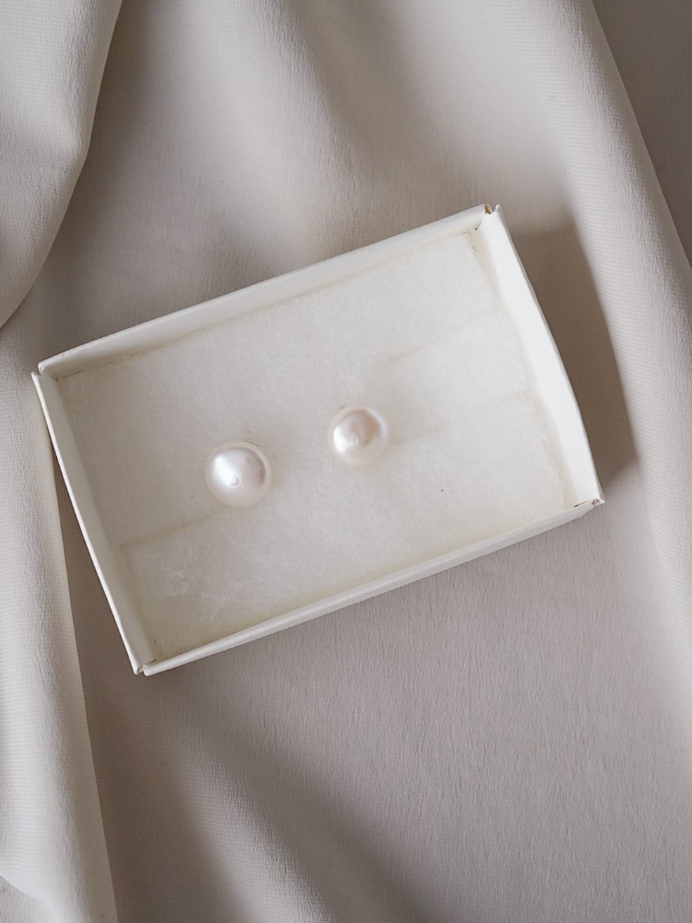 つるんと丸みを帯びた愛らしいフォルムが魅力の、ボタン型天然パール。