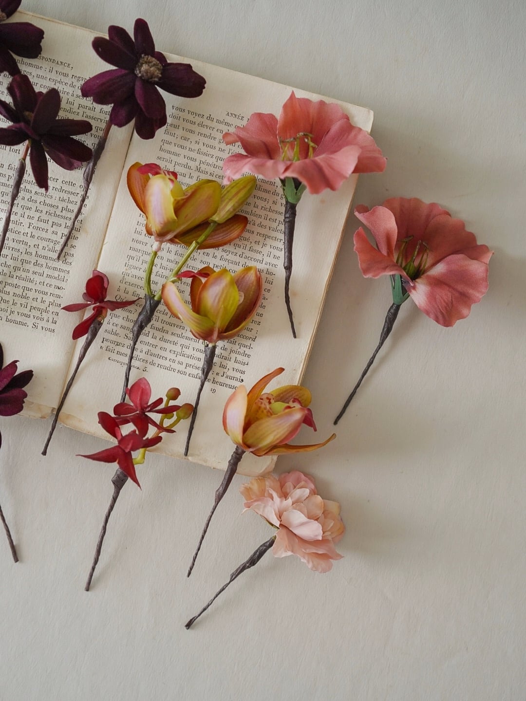 アーティフィシャルフラワーを使った完成品販売ヘッドパーツ。