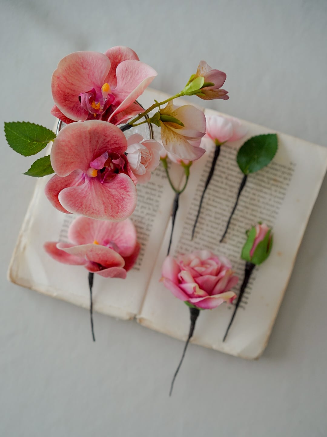 生花のような自然な美しさはもちろん、アレンジしやすいように茎を長めに残し、流れを活かしたお花を組み合わせてお作りしました。