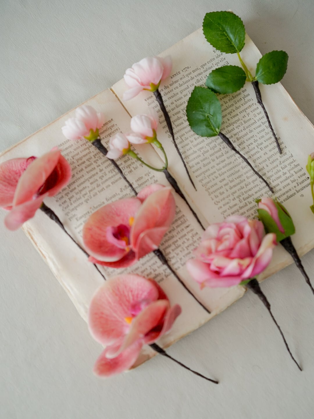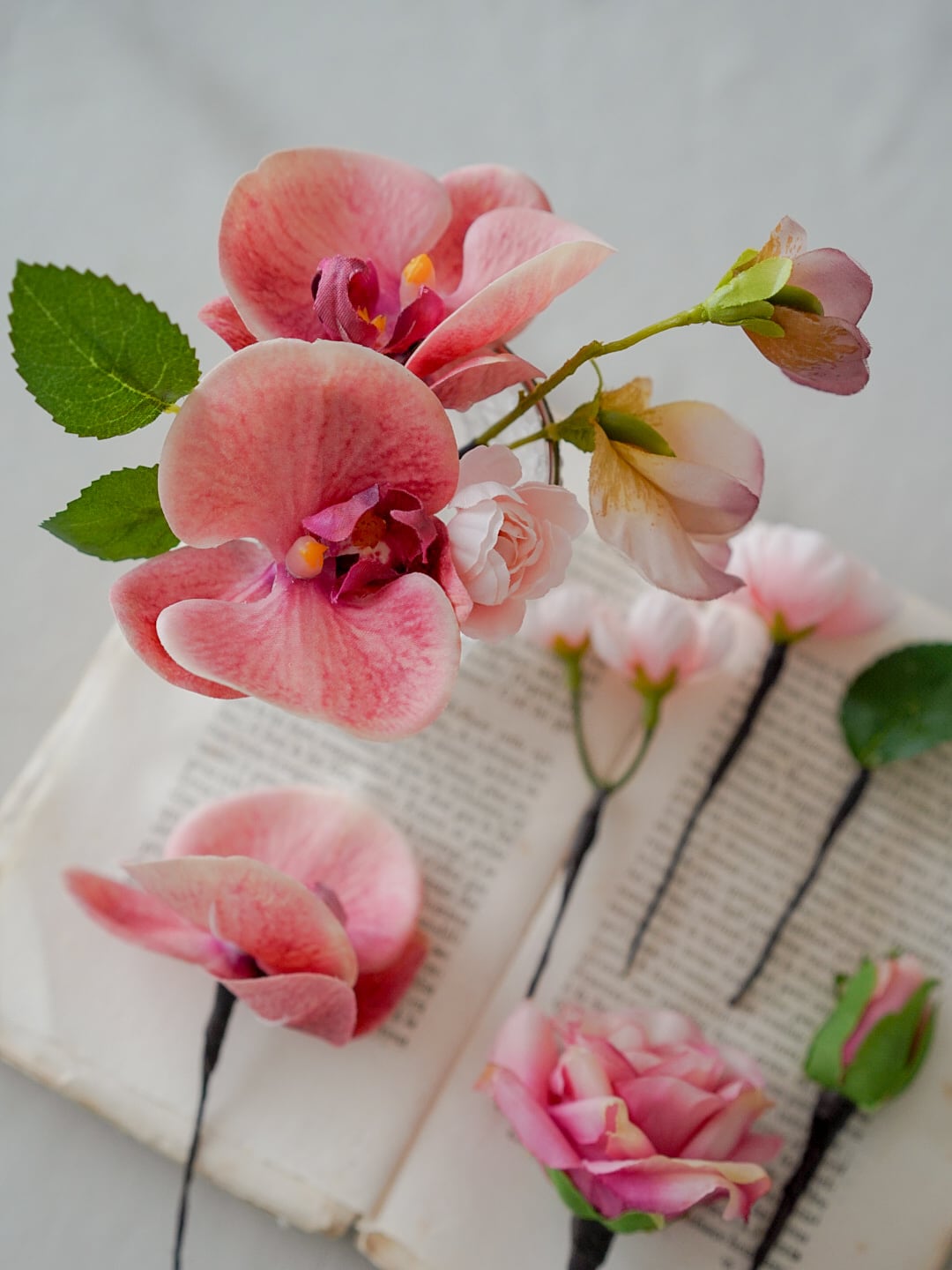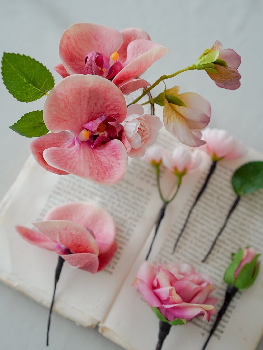 アーティフィシャルフラワーを使った完成品販売ヘッドパーツ。