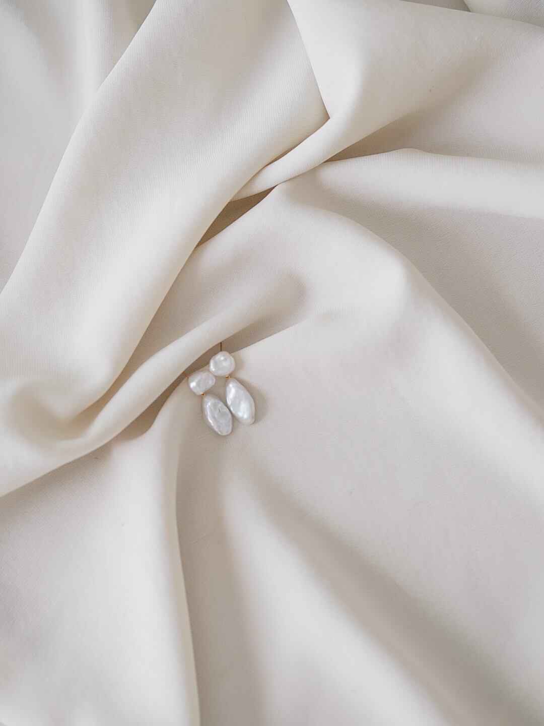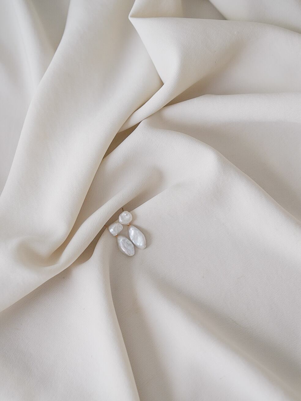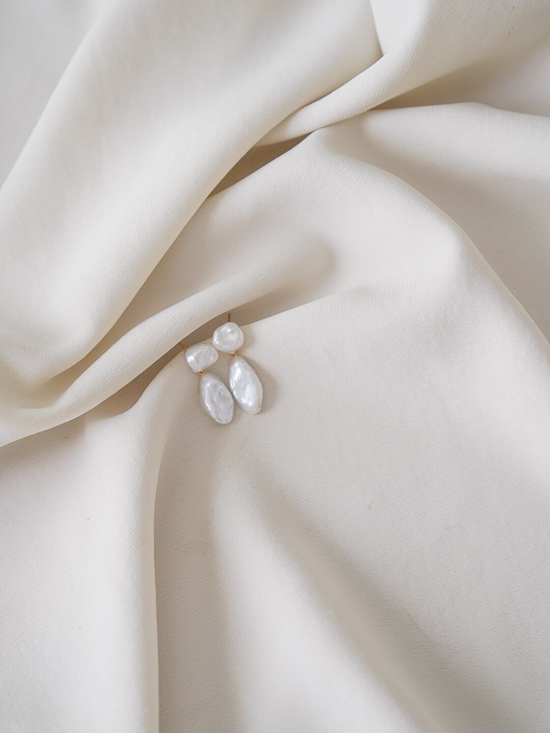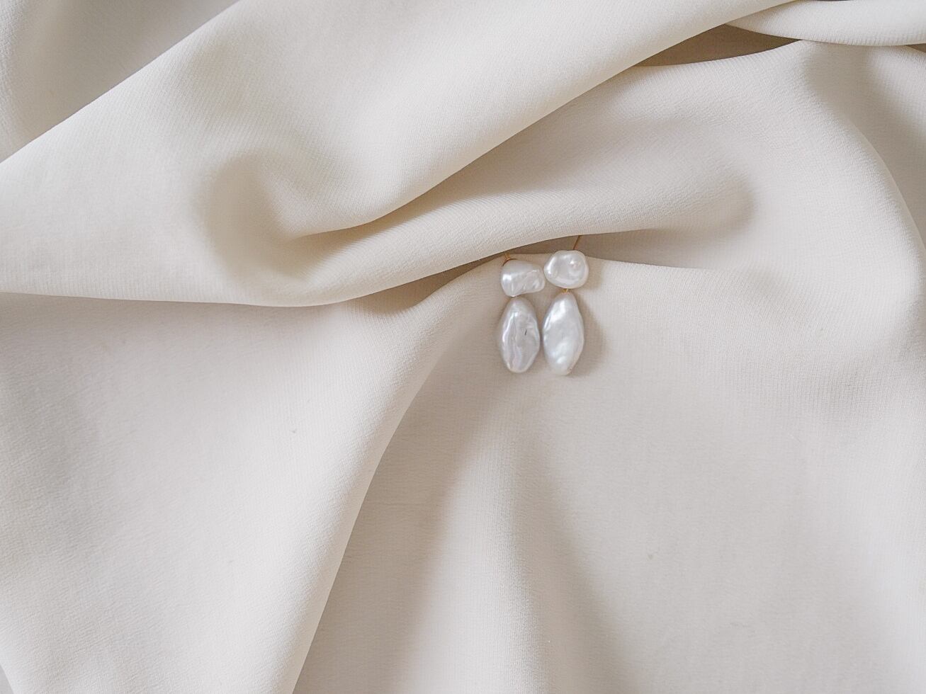 やわらかな艶をもつバロックパールを組み合わせた、上品なピアス/イヤリング。