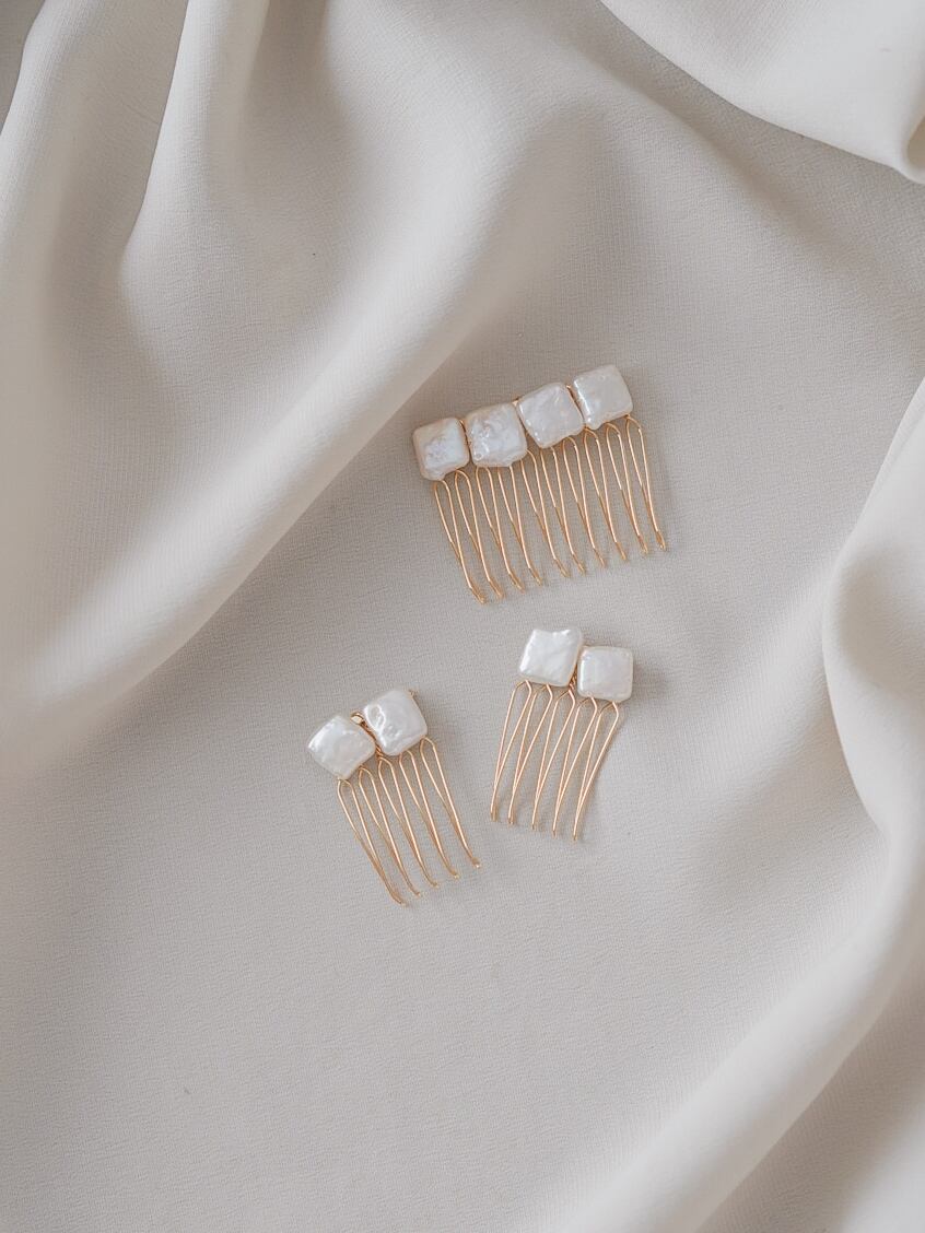 気取りのない可愛らしさが魅力の、バロックパールのヘアコームセット。