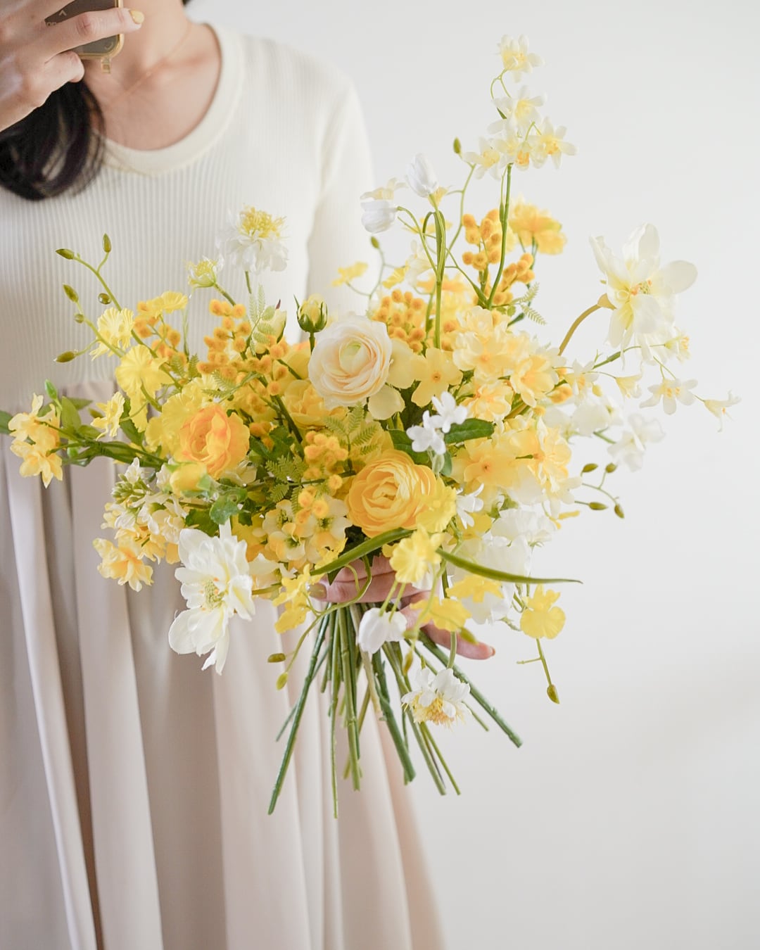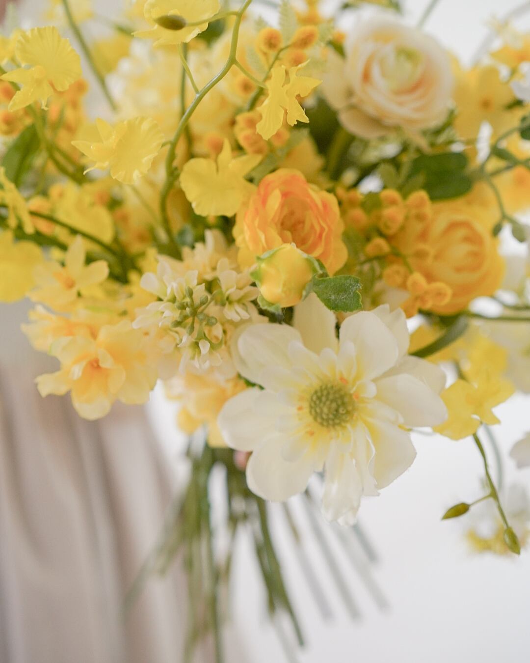 オフホワイトの花々を合わせ、