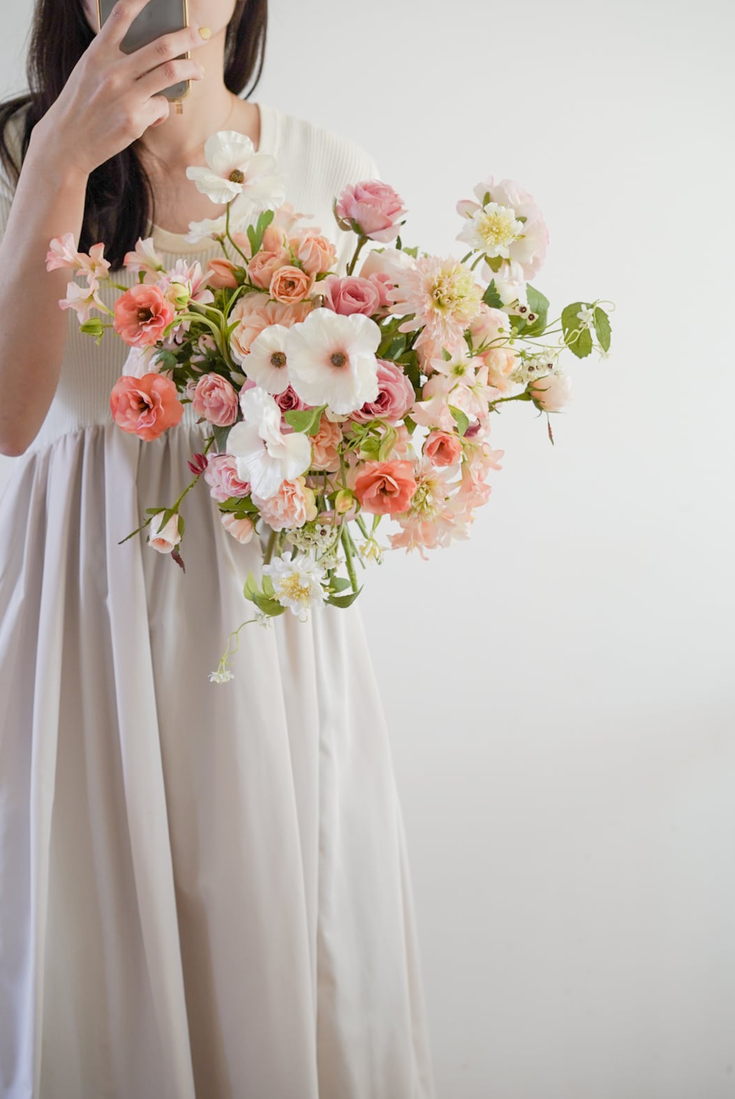 前撮り・挙式・後撮りまで安心してお使いいただけるブーケ。