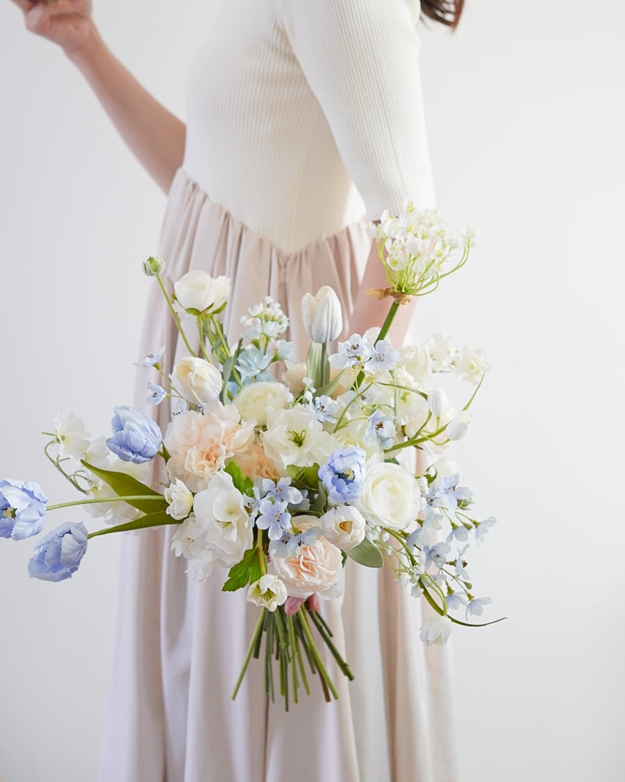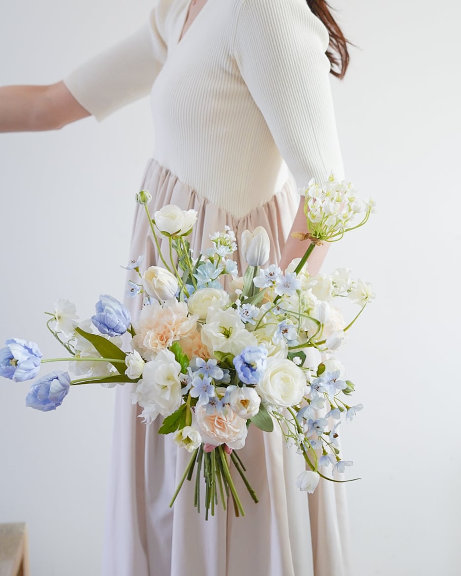 〈完成品販売ブーケ〉white blue artificial flower bouquet