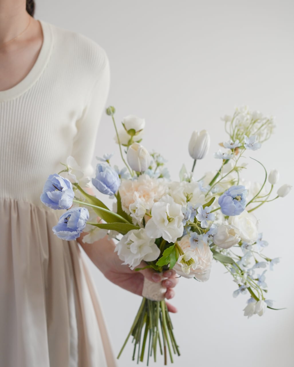 ラナンキュラスやチューリップ、小花を繊細に重ね、