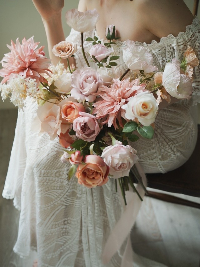 高級造花、アーティフィシャルフラワーを使ったあなただけのウェディングブーケをお作りしております。