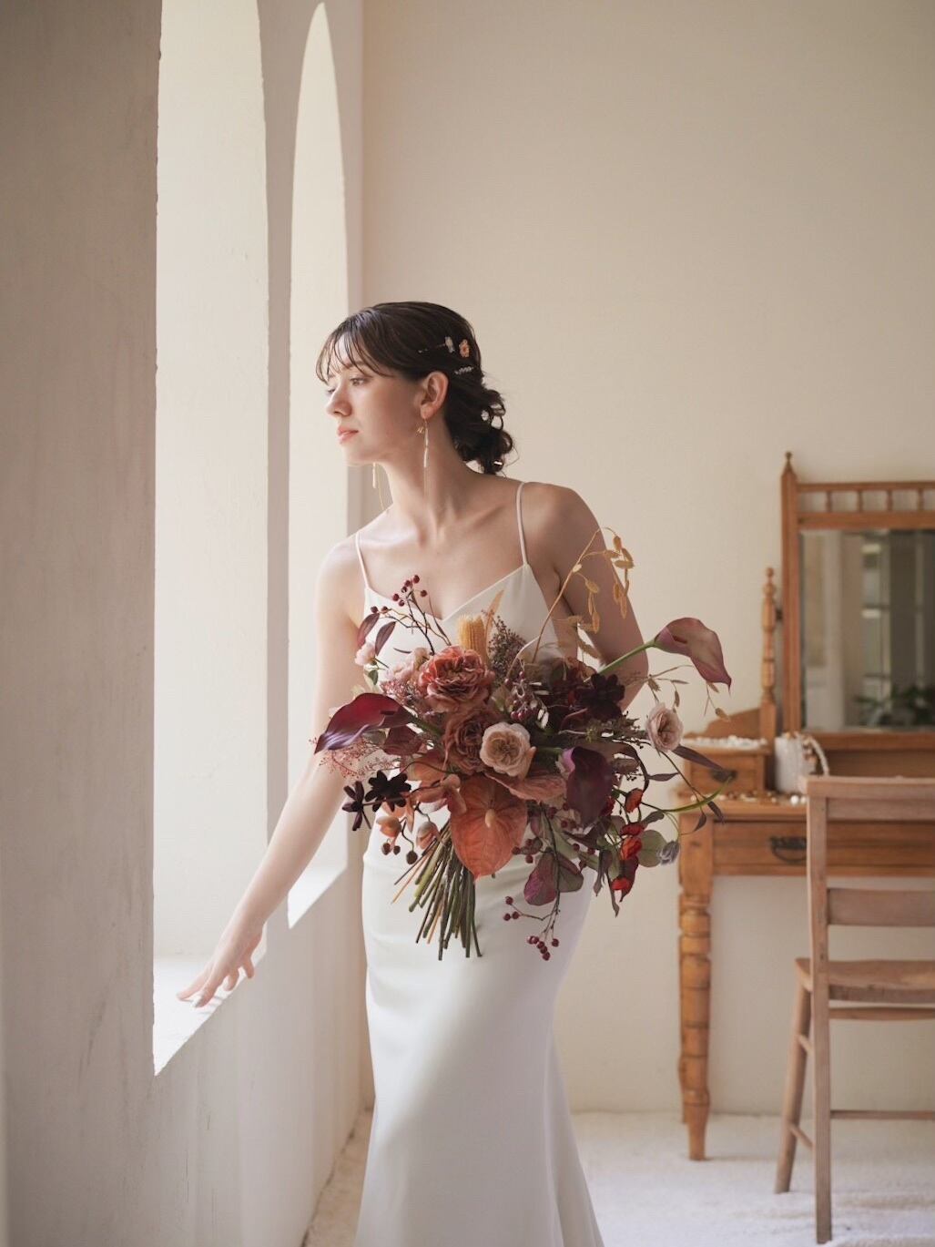 全てアーティフィシャルフラワーでお作りしていますので、ロケーションフォトでのご使用、前撮り後にお式でのご使用も可能です。